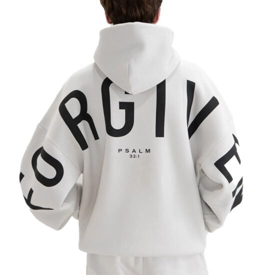 Oversized Hoodies For Men Forgiven Letter Print With Pockets White