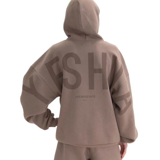 Oversized Hoodies For Men Yeshua Letter Print With Pockets Brown