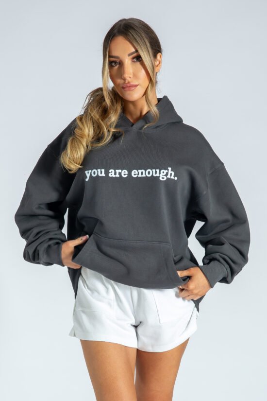 You Are Enough Oversized Hoodies Pullover Sweatshirt With Pockets Charcoal