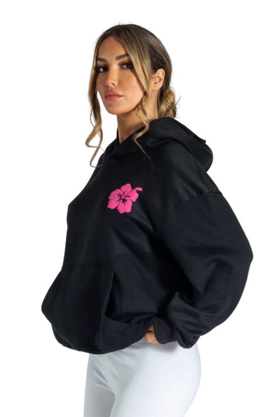 Pink Palm Puff Oversized Hoodies Pullover Long Sleeve Sweatshirt with Pockets Black