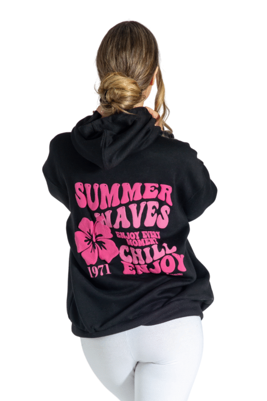 Summer Waves Puff Printed Oversized Hoodies Pullover Long Sleeve Sweatshirt with Pockets Black