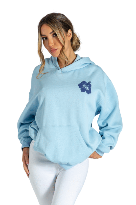 Pink Palm Puff Oversized Hoodies Pullover Long Sleeve Sweatshirt with Pockets Turquoise