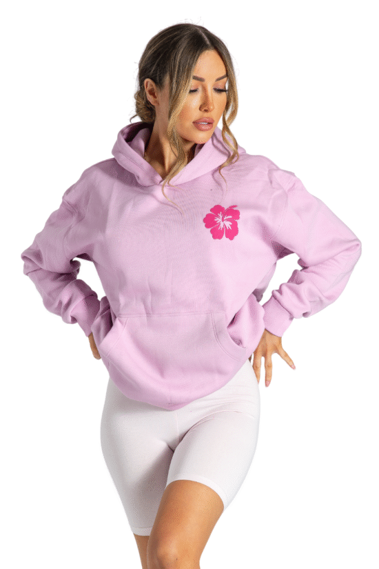 Pink Palm Puff Oversized Hoodies Pullover Long Sleeve Sweatshirt with Pockets Purple