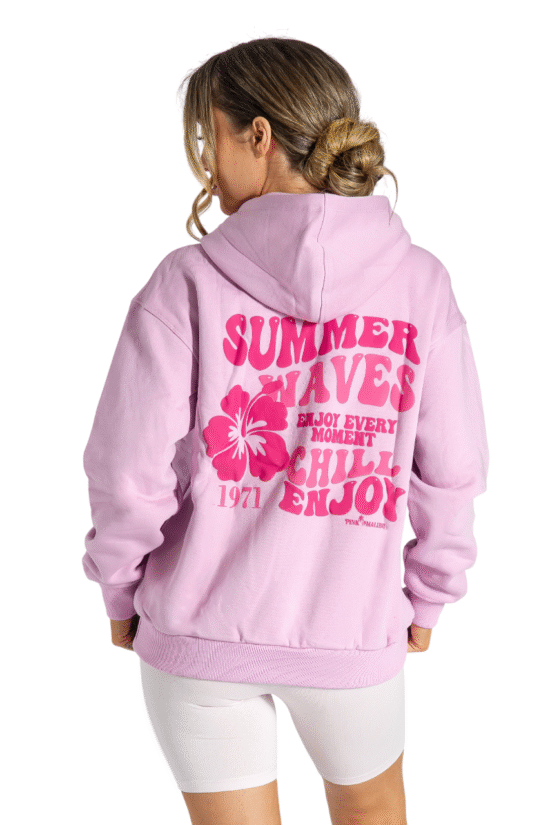Summer Waves Puff Printed Oversized Hoodies Pullover Long Sleeve Sweatshirt with Pockets Pink