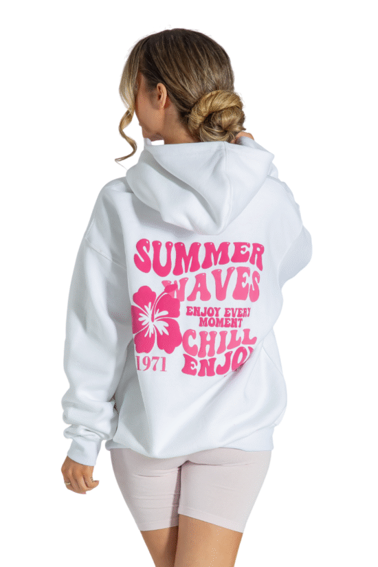 Summer Waves Puff Printed Oversized Hoodies Pullover Long Sleeve Sweatshirt with Pockets White