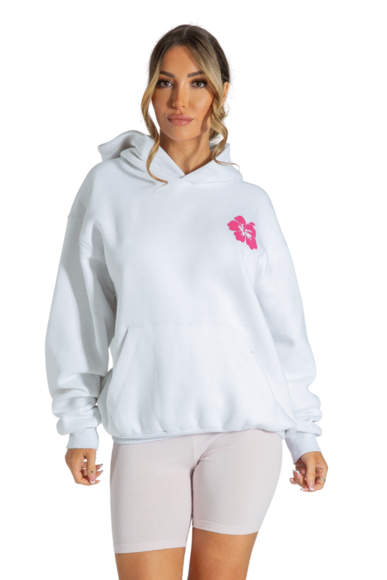 Pink Palm Puff Oversized Hoodies Pullover Long Sleeve Sweatshirt with Pockets White